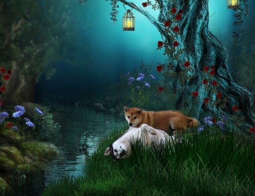 For example, the dog art pictures at the beginning of this article were created using fantasy backgrounds by Sveva.