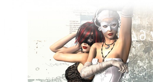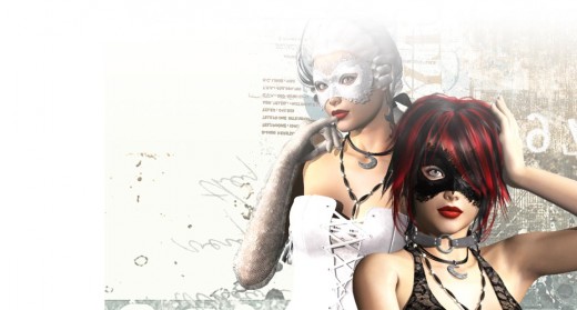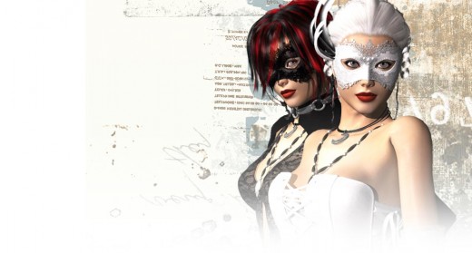 Masquerade WordPress Theme images were created with Carrara, Photoshop, and 3D-models from Daz 3D.