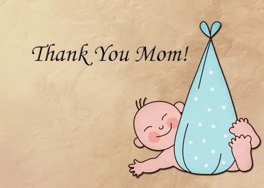 - The first card features a cute baby, on a patterned blue background. The cover text reads, “Thank You Mom!”.