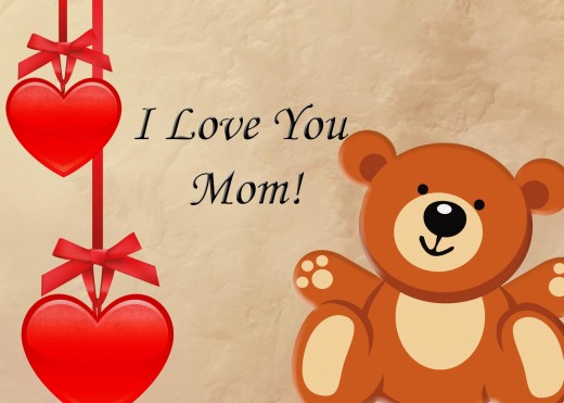 - The second card features a teddy bear and a love shaped picture frame. Its message is simple – “I Love You Mom!”.