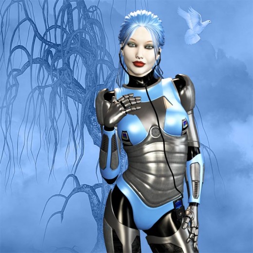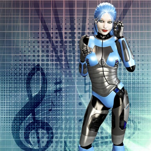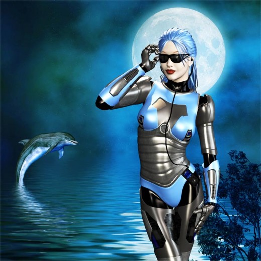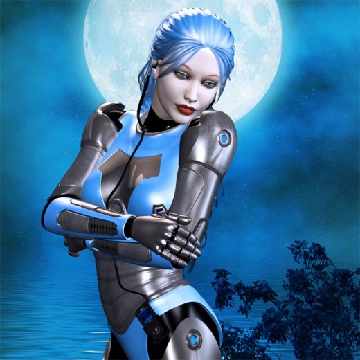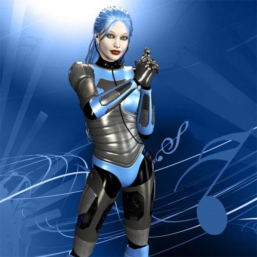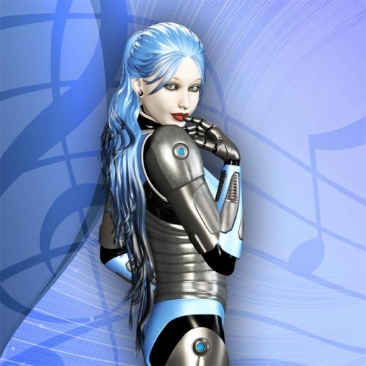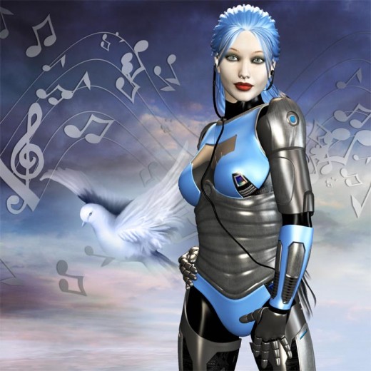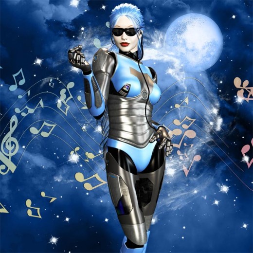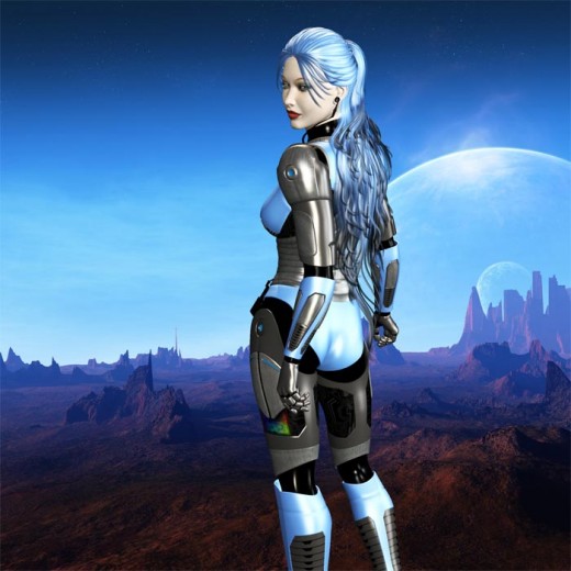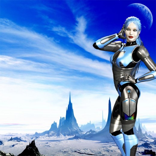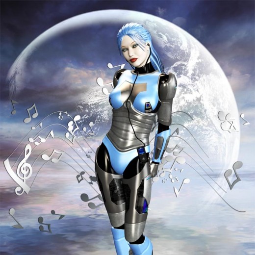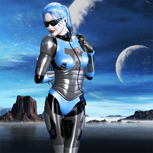 - Science fiction landscape. I integrated my mp3 robot girl with various fantasy backgrounds from alien worlds. To fit in with the technology motif, I made sure to tint the backgrounds in a blue hue.