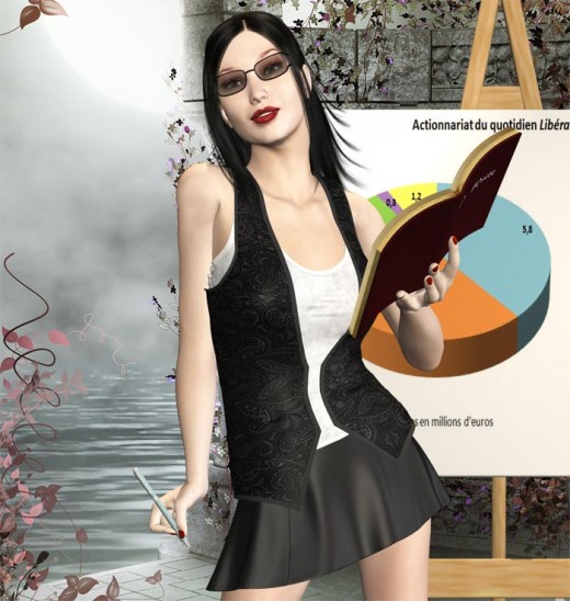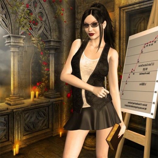 In my teacher pictures I wanted to create an idealized version of the stylish teacher. She is modern, beautiful, confident, and not shy of her sexuality. She has no need to hide behind tweed or mothballs, and can command respect despite her obvious good looks.